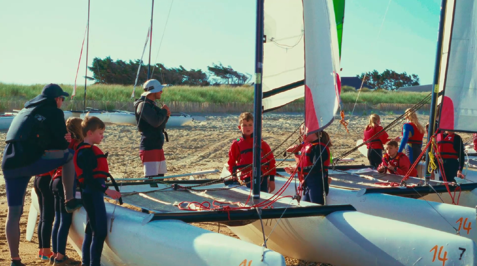 Du mardi au jeudi, 2h par jour, en juillet et aout. Initiation aux activités nautiques : voile, char à voile, paddle, kayak, chasse au trésor, pêche à pied... L'activité est choisie en fonction de la météo, de la marée et des enfants présents. Chaussons ou baskets obligatoires — Aisance aquatique. Location combinaison possible. Réservation en ligne